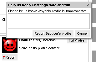 Providing an abuse report when a user messages you will give Chatango the necessary technical information in case we need to restrict that user. You can also provide a comment when you submit an abuse report.